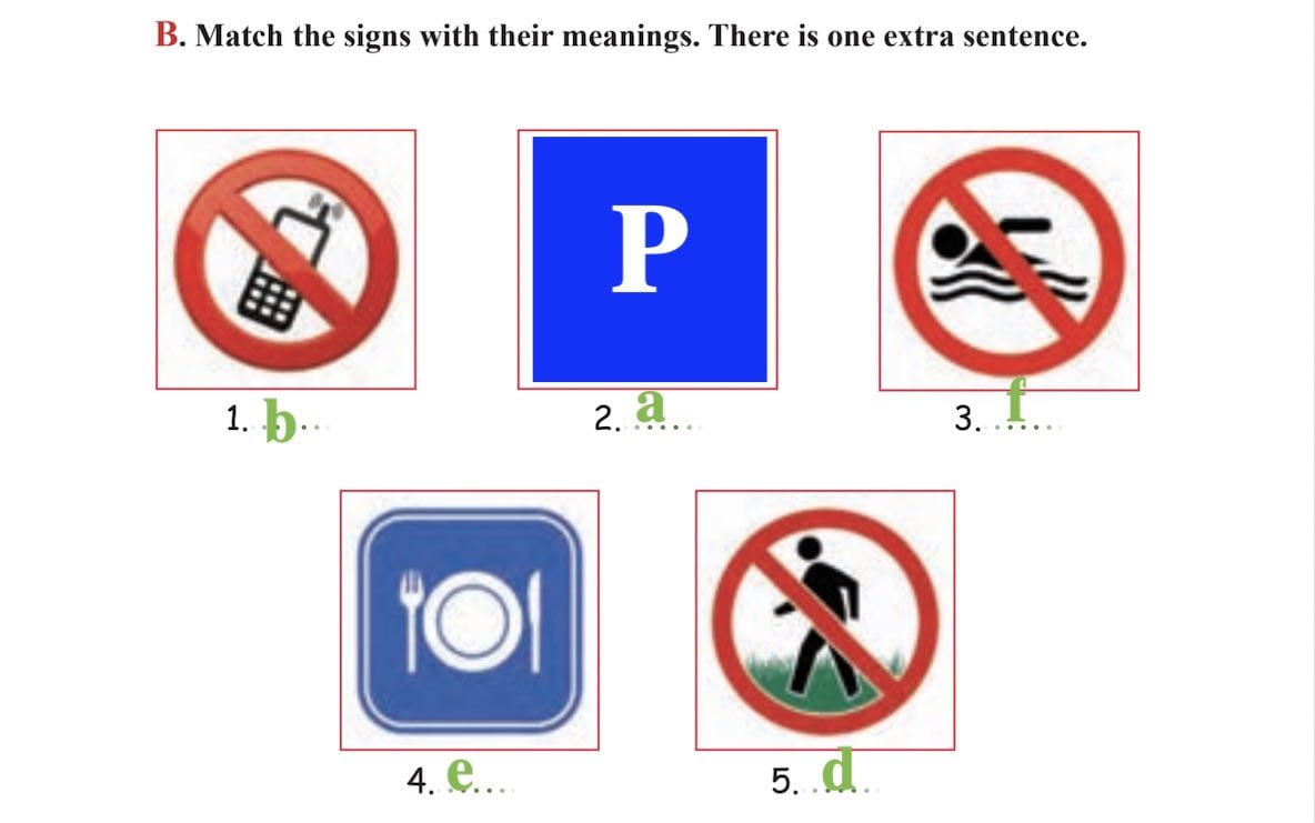 علامت ها را با معنی هایشان تطبیق دهید. یک جمله اضافی وجود دارد.