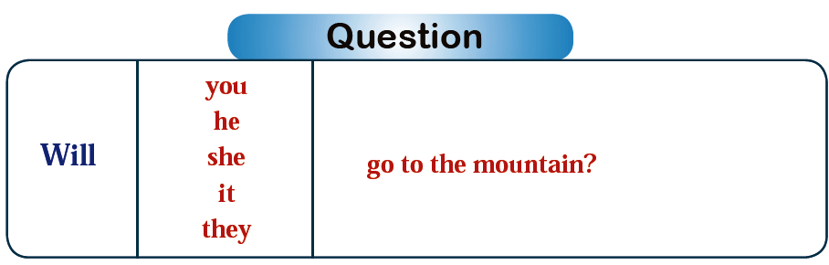 حالا ما می خواهیم جمله را سوالی کنیم. چکار باید انجام دهیم؟ بله جای will را باید با فاعل عوض کنیم و آخر جمله یک علامت سوال بگذاریم: